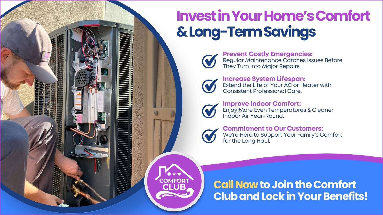 Joining the Comfort Club is more than just a service plan — it’s a strategic investment in your home’s overall comfort and efficiency. Regular maintenance, priority service, and lifetime guarantees reduce the risk of unexpected breakdowns and extend the lifespan of your HVAC system.